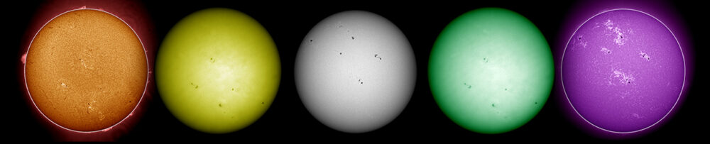 Übersichtsaufnahmen und auf Detailaufnahmen im H-Alpha-Licht (656nm), im Natriumlicht (589nm), im Weißlicht (540nm), im Magnesium-Licht (517nm) und im Kalzium-Licht (393nm).